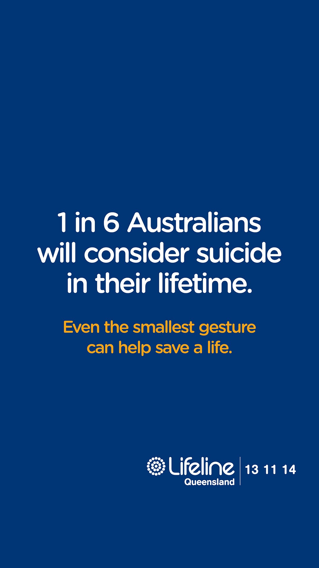 An example of the social media tile in an Instagram feed. The tile says 1 in 6 Australias will consider suicide in their lifeline. Help ensure someone's there to answer every call for help.