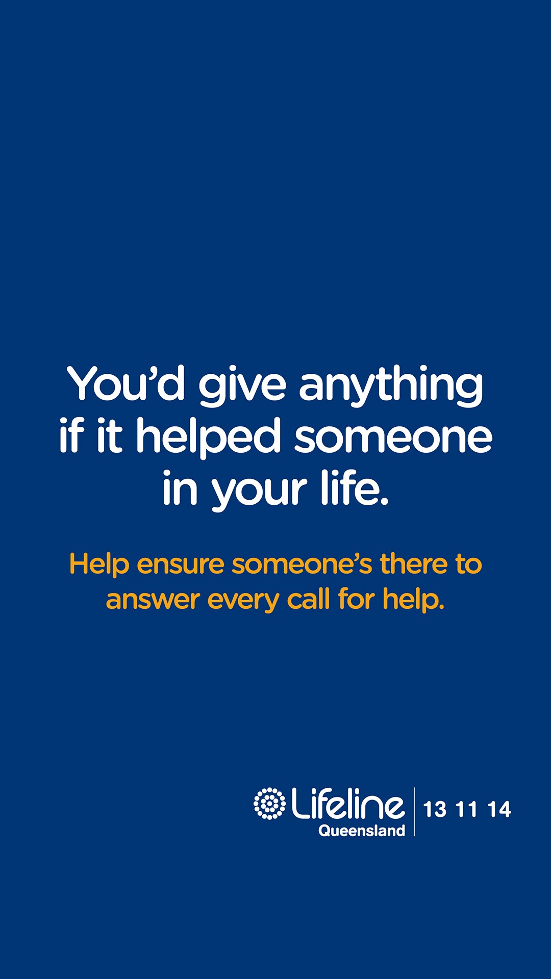 An example of the social media tile in a Reel. The tile says You'd give anything if it helped someone in your life. Help ensure someone's there to answer every call for help.